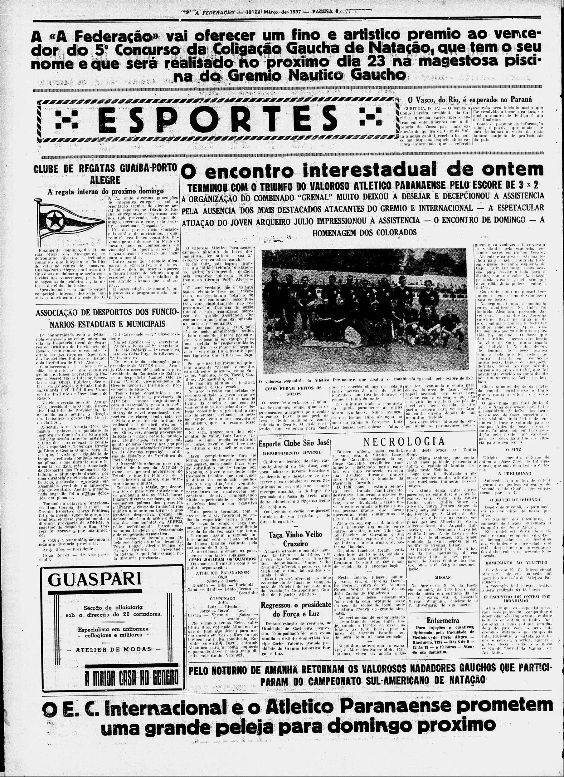 Arquivo:Combinado Grenal 2x3 Athletico Paranaense 18.03.1937.JPG